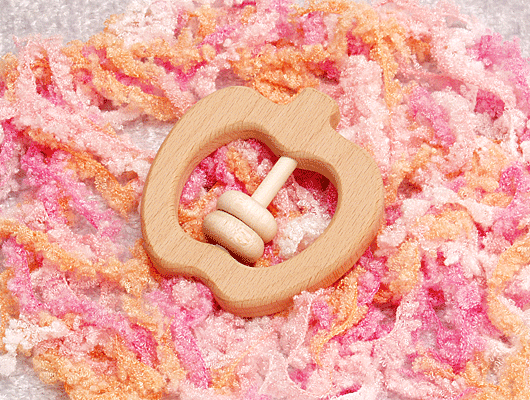 物をにぎる、手を振るの動作を覚える赤ちゃんが初めて出会うおもちゃです。