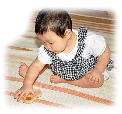 丸いフォルムがあかちゃんの手にやさしいコマ。