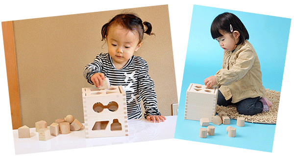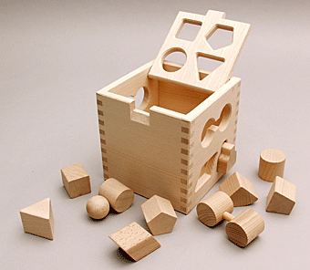 立方体と平面図形の関係を自然に覚える木製玩具。