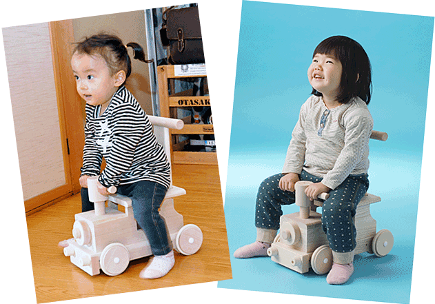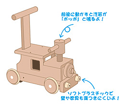 乗ったり押したりして動かすと、「ポッポ」とかわいい音がします。