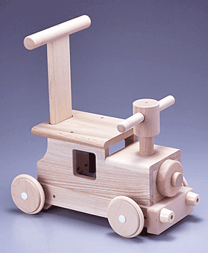 乗って、押して、動くと音が出る木製の汽車。