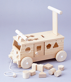乗って、押して、パズル遊びもできる楽しい木製バス。