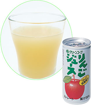 りんごを砕いて搾った果汁を加熱殺菌して漉したストレート果汁100%。