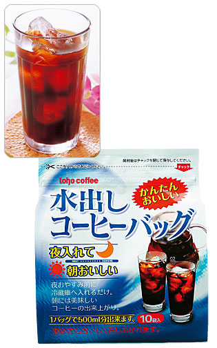 インドネシア・ブラジル・ホンジュラス産のコーヒーを深煎りして中細挽きにし、使いやすいパックにしました。一晩水に入れておくだけで、本格派のおいしいアイスコーヒーができあがります。
