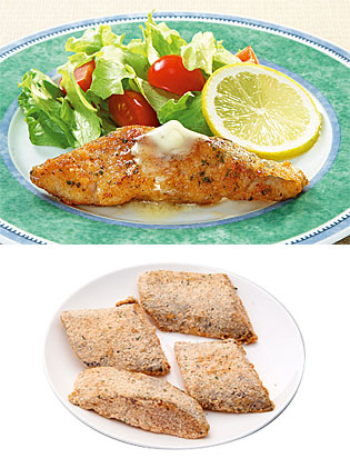 白身魚のホキを、グリーンコープオリジナルのムニエル粉で味付けました。フライパンで焼くだけで、手間を掛けずにおいしいムニエルが出来上ります。