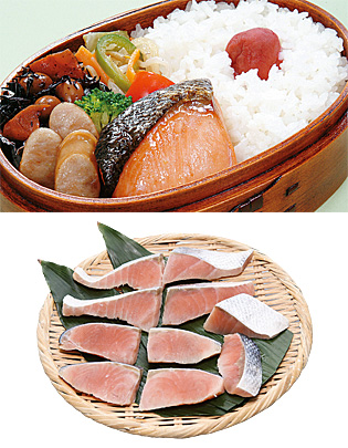 原料は北海道産シロザケ。お弁当にぴったりのサイズにカットし、