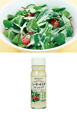 チーズの風味がきいたこのドレッシングをかければ、いつものサラダも手軽にシーザーサラダ(※)風に。ボイルした鶏やエビ、サーモンにもピッタリ合うので、サラダにトッピングすればボリュームアップ。メインの豪華なおかずになります。