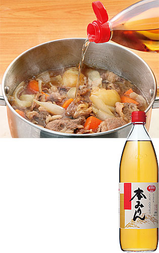 タイ産もち米・米こうじで作った純米本みりんをベースに、糖類、アルコールを加えた、徳用タイプのみりんです。アルコール分約14%。