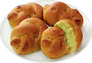 国産小麦のパン生地に国産ほうれん草の裏ごしとナチュラルチーズを各9%配合しました。