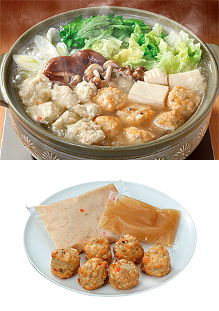 鶏生つみれと鶏だんご、塩鍋スープをセットしています。