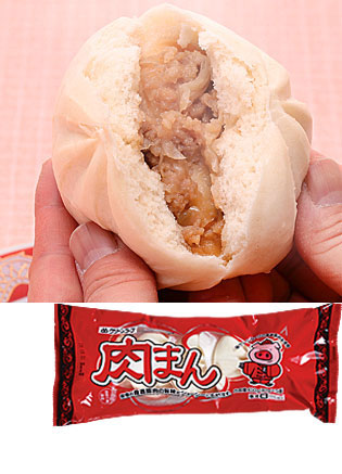 肉まんを袋から取り出し皿にのせ、少量の水を噴霧しラップをして、1個の場合45~50秒、3個の場合1分40秒~1分50秒(500W)程度温めてください。
