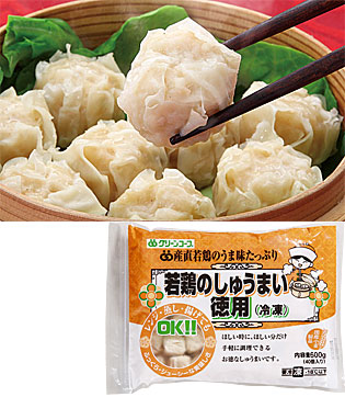 蒸しても揚げても、ふっくら、ジューシー。産直若鶏の旨みを十分に活かしたしゅうまいです。