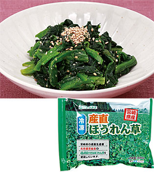 冷凍産直ほうれん草(宮崎県産)は、冷凍庫にストックしておけば、大助かり。チャックシール袋入りで、必要な量をその都度取り出して使えるので大変便利です。