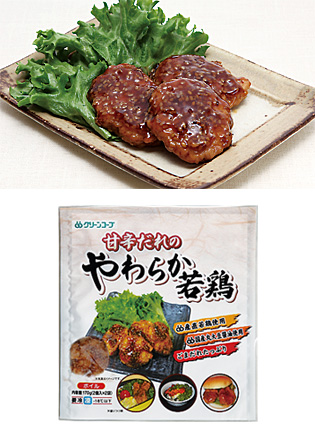 産直若鶏ムネ肉を粗挽きし、タレを絡め、てりやきハンバーグ風に仕上げています。湯せんで簡単に調理できます。お弁当のおかず、パンにはさんで食べるのもおすすめです。