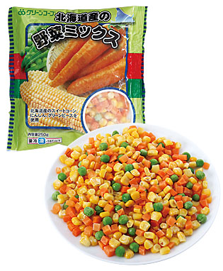 市販のミックスベジタブルは、その多くが外国産の野菜を原料としています。