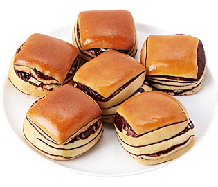チョコシートが層になるようパン生地に折り込み、5センチ角にカットし、ふわっと焼きあげました。