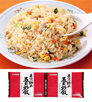 従来の五目炒飯に「直火で炒める工程」を追加することで、パラパラに炒めたご飯の香ばしさをプラス。
