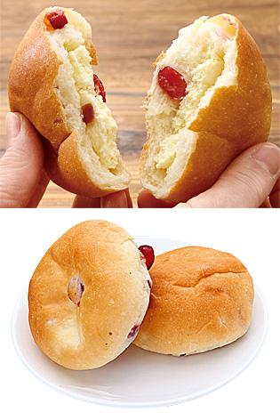 海水塩(なぎさ)を使用した生地に、ドライクランベリーを混ぜ合わせ、練乳を加えたクリームチーズを包んで焼き上げました。