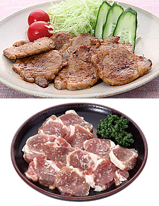産直豚ヒレ肉は、部位の中でも一番きめが細かく柔らかで、あっさりと淡白な味です。さらに疲労回復に良いビタミンB1を多く含みます。そのヒレ肉を8mmの厚さにスライスして、塩麹のタレに漬け込むことで、うま味を十分に引き出しました。