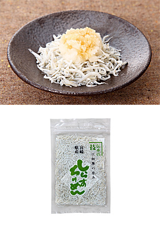 潮の流れの速い宮崎県日向灘産の新鮮な「しらす(いわし稚魚)」を塩ゆでしただけ。良質なしらすのおいしさを、そのまま生かしました。