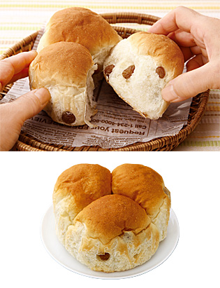 生地を3個組み合わせて型紙で焼き上げているので、ちぎりパンとして食べていただけます。