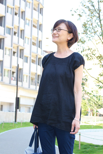 フレンチパフスリーブが甘くなり過ぎず、二の腕もさりげなくカバーしてくれます。