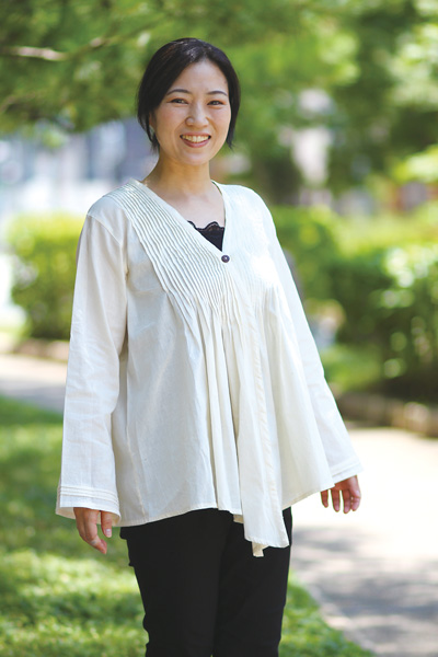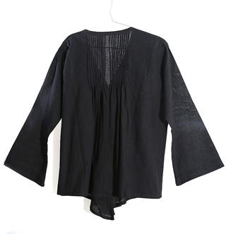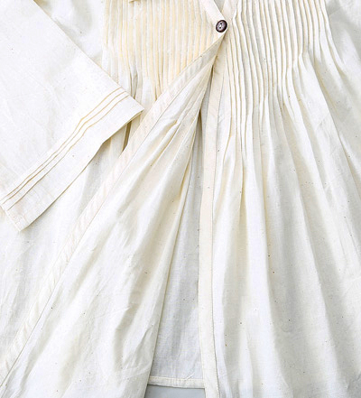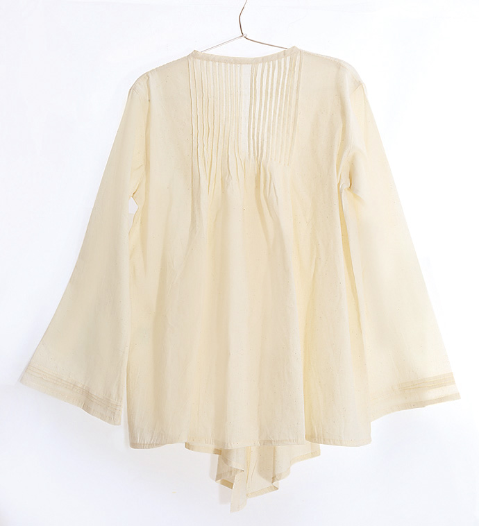 たくさんのタックのおかげで身幅にも余裕があって、袖丈もちょうどよい長さです。