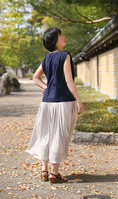その上にショートベストを重ねてアクセントにしたりと、活用できるポイントが沢山。