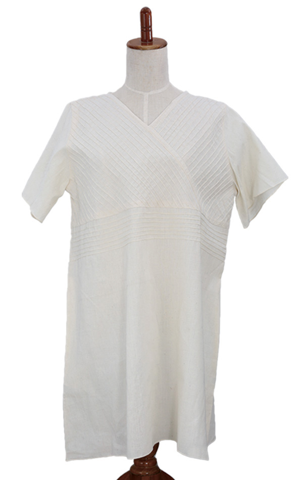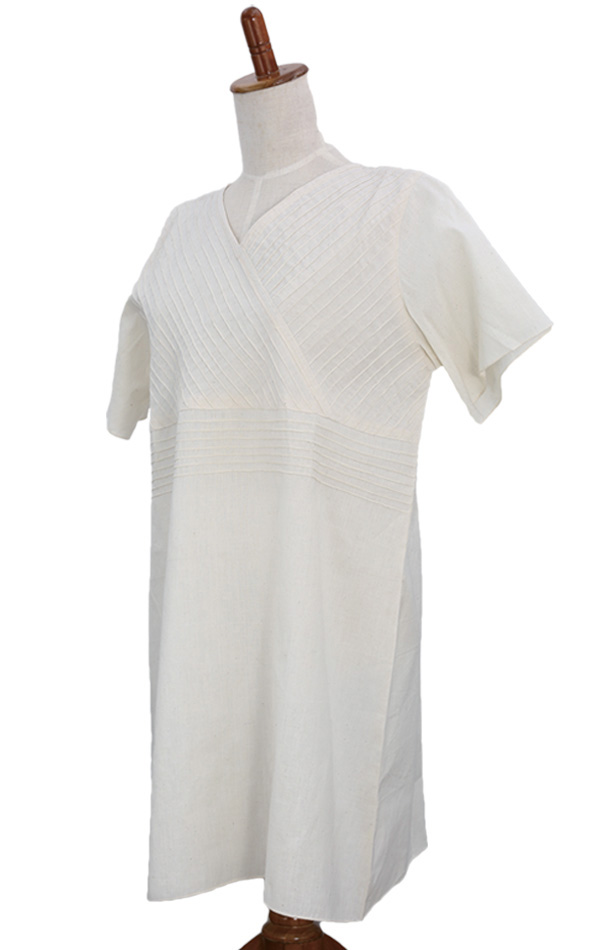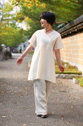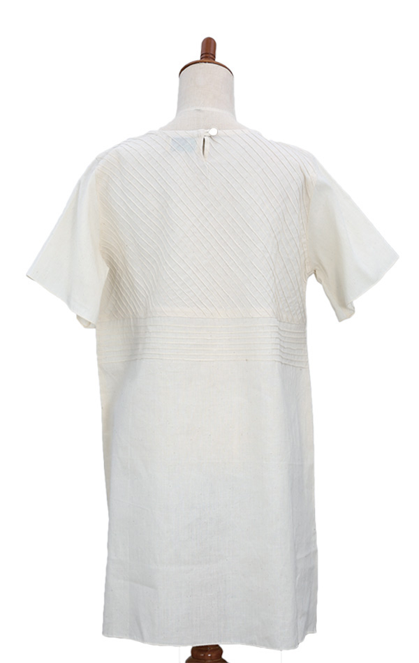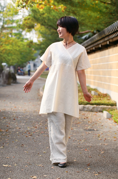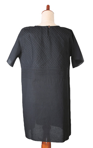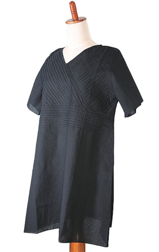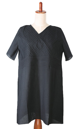 また、胸元切り替えのピンタックで絞ったAラインのチュニックは