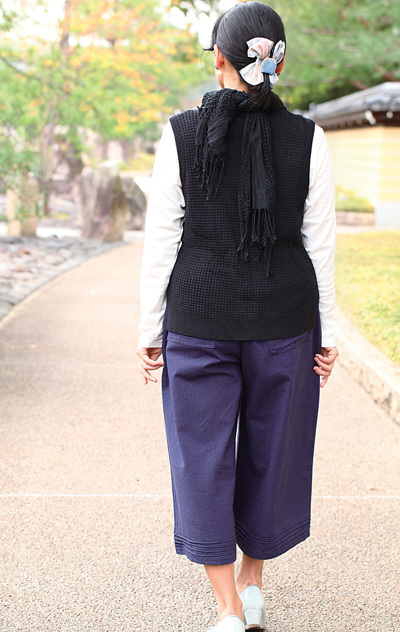 このガウチョパンツはザブザブ洗って柔らかくなるにつれ着心地感がさらにアップすると評判です。
