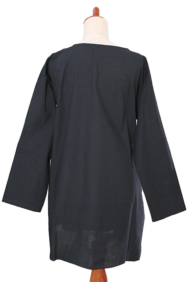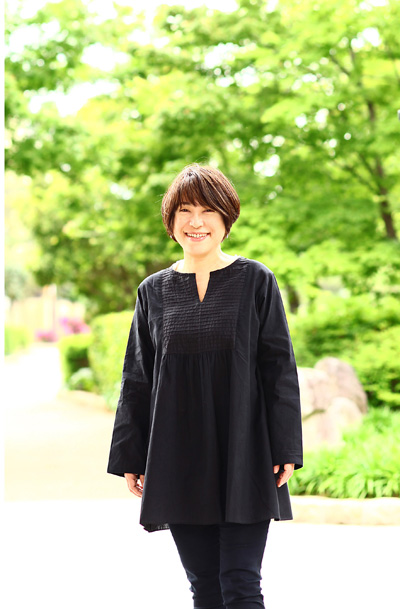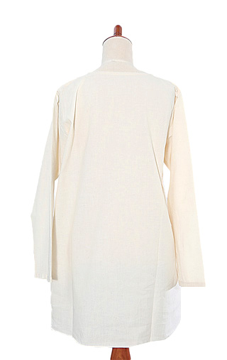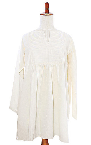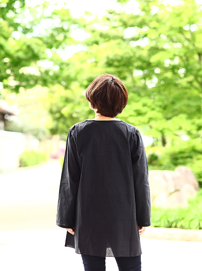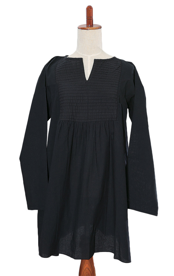 胸元に施したピンタックはシンプルなチュニックにひと味加えておしゃれに見せます。