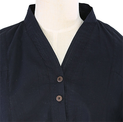 胸元両サイドの大きめタックのふんわり感とシャープなVネックを合わせることにより、
