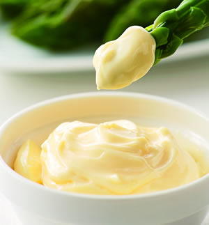 マヨネーズは食用油と卵、食酢を主な原料とし、わずかな塩・砂糖・香辛料(辛子)を加えただけのいたってシンプルなつくり。しかし、その味わいは、いずれの原料とも異なる独特で深いものがあります。また、味付けだけでなく、使い方次第で料理の食感や仕上がりを良くするなどの働きもあるたいへん重宝な調味料でもあります。