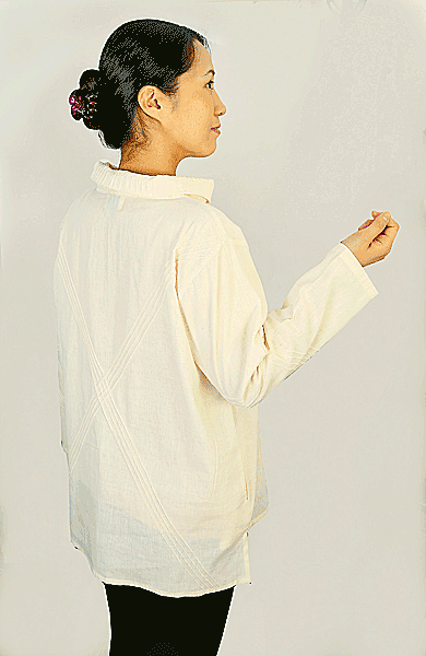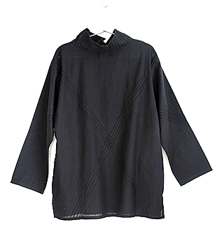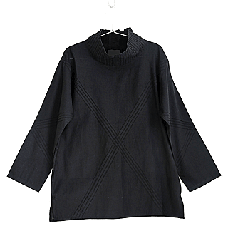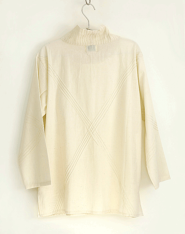 前後身頃の大きなクロスのピンタックが特徴的なデザイン。