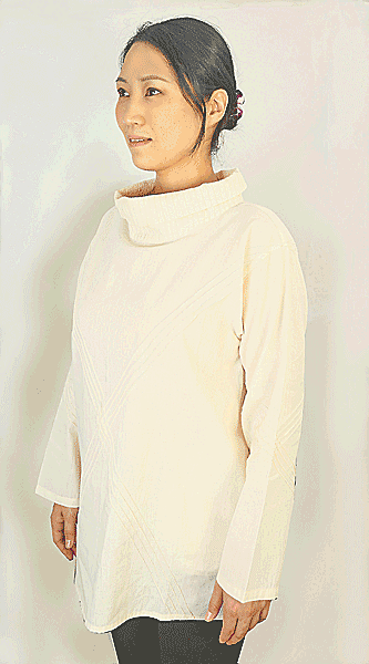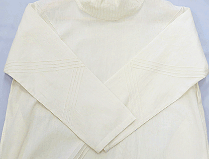ハイネックのえりにも全体ピンタックが施されています。折り曲げてもかわいいです。