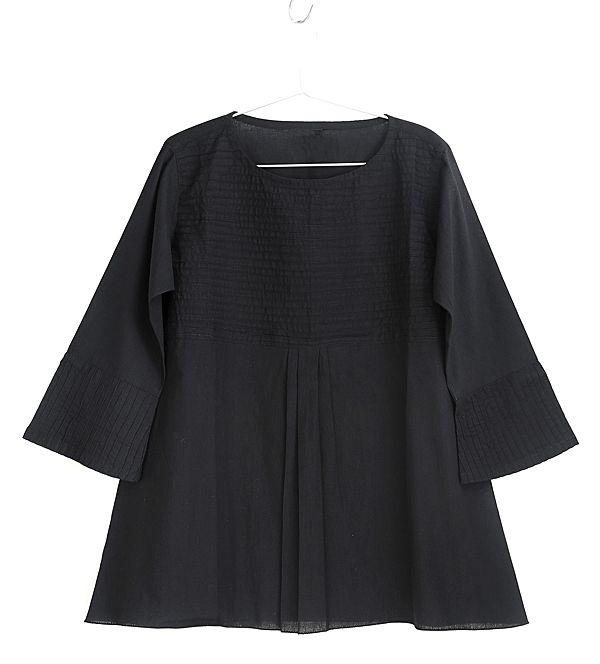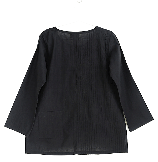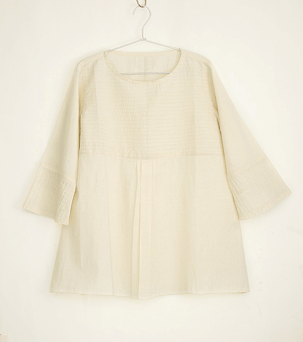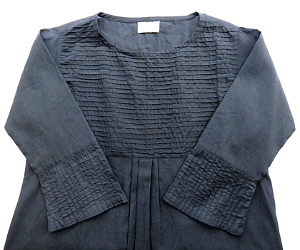 胸とそで口(13㎝ほどの長さ)にピンタックが施されています。