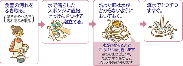 洗った後の排水に含まれるせっけん分は1日で分解され、水を汚しません。